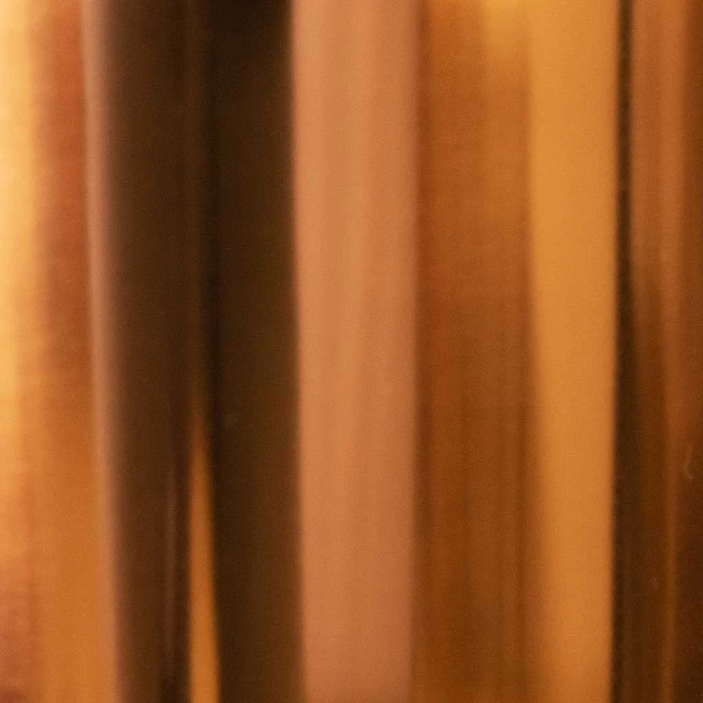 Features: Cylindrical hanging copper planter with a shiny polished copper finish. Leather strap for hanging.