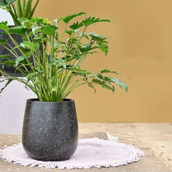 Polystone Coated Ribbed Balloon Planter – Raw Grey