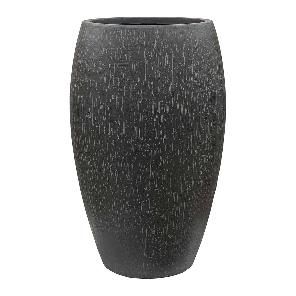 The refined tall balloon vase shape is made from fiberclay, a combination of clay applied to a fibreglass structure for a durable, lightweight planter with UV and frost protection.